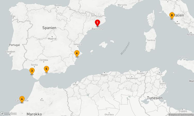Über die Reisesuche können Sie auch weitere Costa Kreuzfahrten im westlichen Mittelmeer entdecken.