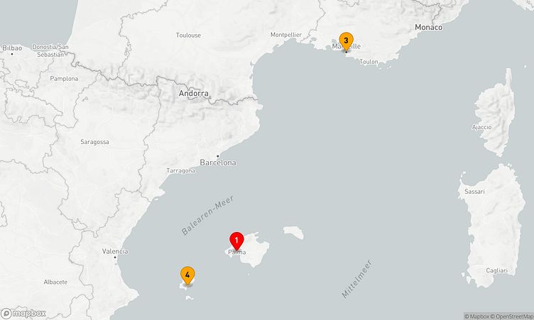 Freuen Sie sich auf Anläufe in Häfen wie Palma de Mallorca, Marseille und Ibiza, die Ihnen authentische Einblicke und besondere Erlebnisse bieten.