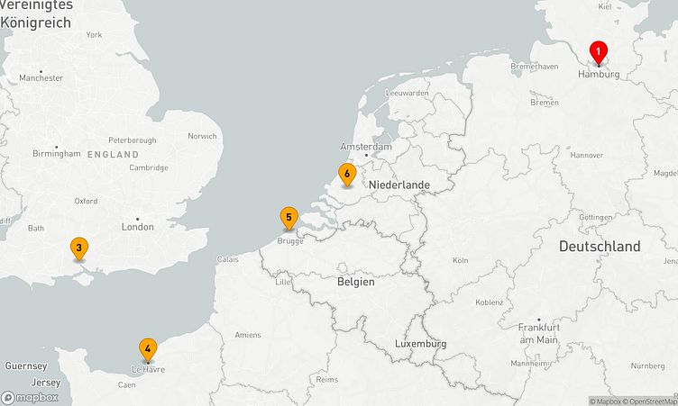 Auf Ihrer Route besuchen Sie unter anderem die Häfen von Hamburg, Southampton und Zeebrügge, die Ihnen spannende Eindrücke und unvergessliche Entdeckungen ermöglichen.