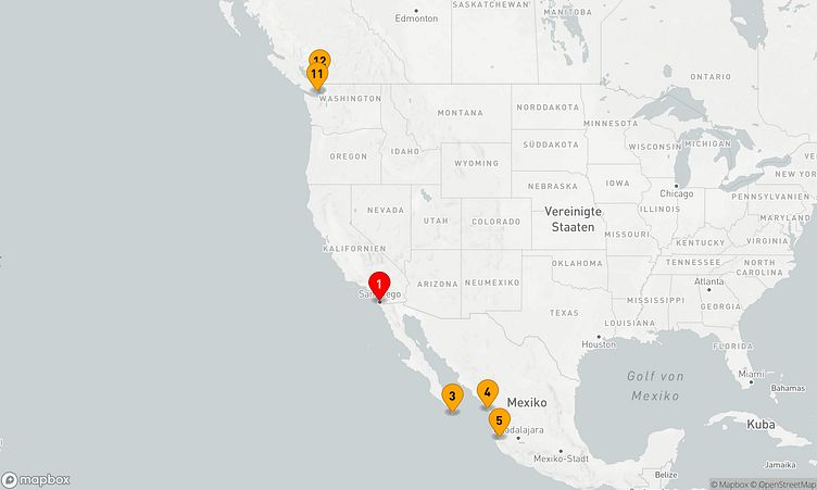 Nach Ihrem Start am 25. April 2026 in San Diego (Vereinigte Staaten) führt Sie die Route über 11 Tage bis zu Ihrem Zielhafen Vancouver (Kanada), wo Sie am 06. Mai 2026 ankommen.
