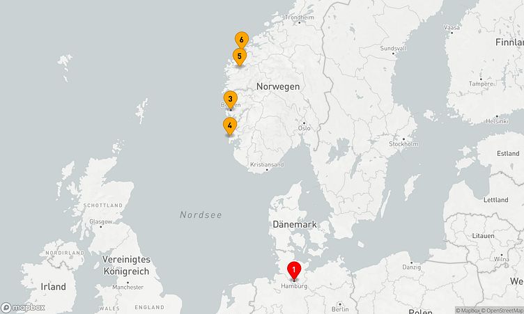 Freuen Sie sich auf Anläufe in Häfen wie Hamburg, Bergen und Nordfjordeid, die Ihnen authentische Einblicke und besondere Erlebnisse bieten.