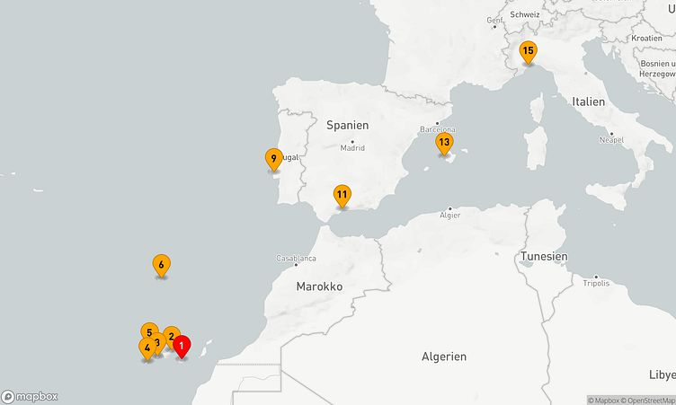 Ihre 14-tägige Reise beginnt am 29. November 2027 in Gran Canaria (Spanien) und endet am 13. Dezember 2027 im Zielhafen Savona (Italien).