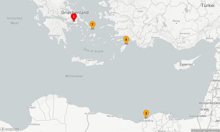 Auf Ihrer Reise besuchen Sie unter anderem die Häfen von Athen (Piräus), Alexandria und Rhodos, wo spannende Eindrücke von Land und Kultur auf Sie warten.