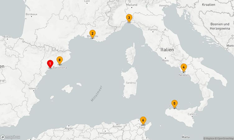 Auf Ihrer Route erwarten Sie Stopps in den Häfen von Tarragona, Marseille und Neapel, wo Sie lokale Sehenswürdigkeiten entdecken und unvergessliche Eindrücke gewinnen können.