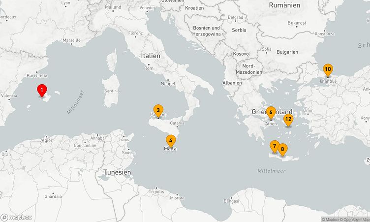Am 17. April 2026 starten Sie in Palma de Mallorca (Spanien) und legen nach 14 Tagen am 01. Mai 2026 in Heraklion (Griechenland) wieder an.