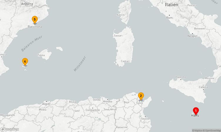 Diese Kreuzfahrt führt Sie zu den faszinierenden Häfen von Valletta, La Goulette und Ibiza, die mit einzigartigen Attraktionen und lebendigen Eindrücken auf Sie warten.