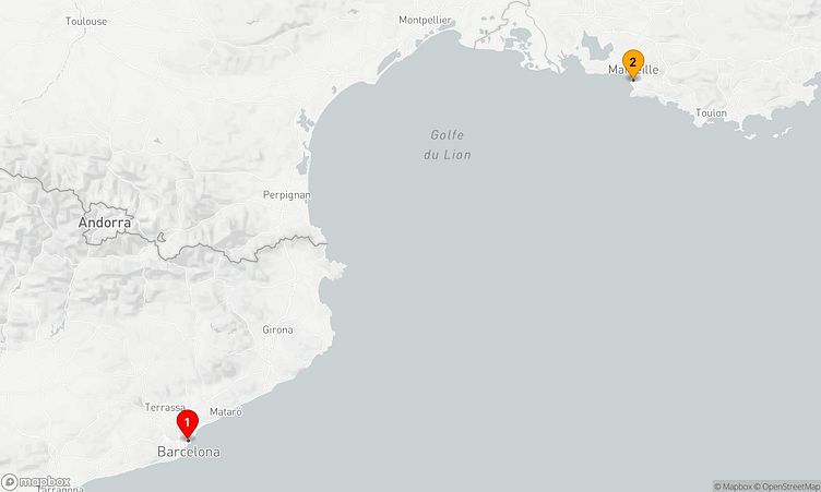 Ihre Reise beginnt am 31. März 2026 in Barcelona (Spanien) und endet nach einem Tag am 01. April 2026 in Marseille (Frankreich).