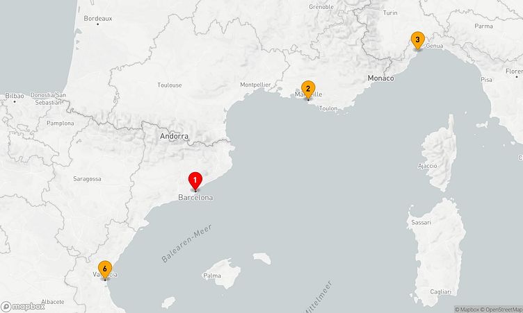 Während Ihrer Reise besuchen Sie unter anderem die Häfen von Barcelona, Marseille und weiteren faszinierenden Destinationen, die spannende Einblicke und einzigartige Entdeckungen ermöglichen.