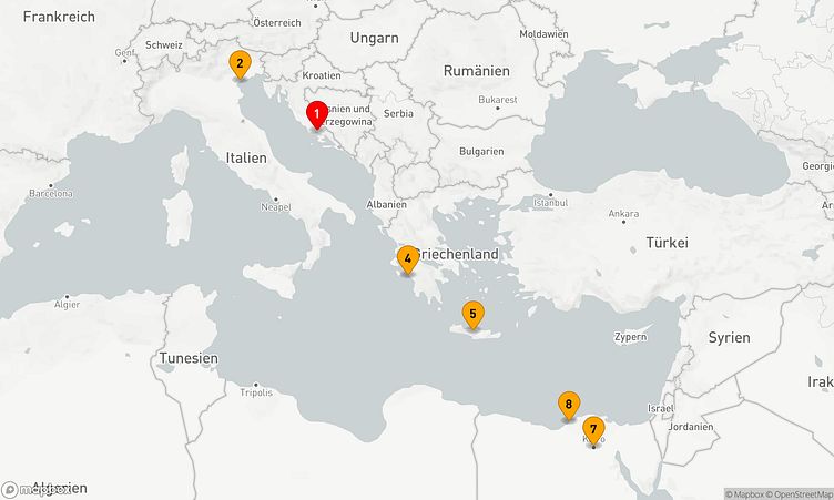 Während Ihrer Reise besuchen Sie unter anderem die Häfen von Split, Venedig und Heraklion, wo faszinierende Einblicke in Land und Kultur auf Sie warten.
