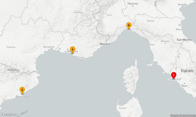 Freuen Sie sich auf Anläufe in Häfen wie Rom / Civitavecchia, Barcelona und Genua, die Ihnen authentische Einblicke und besondere Erlebnisse bieten.