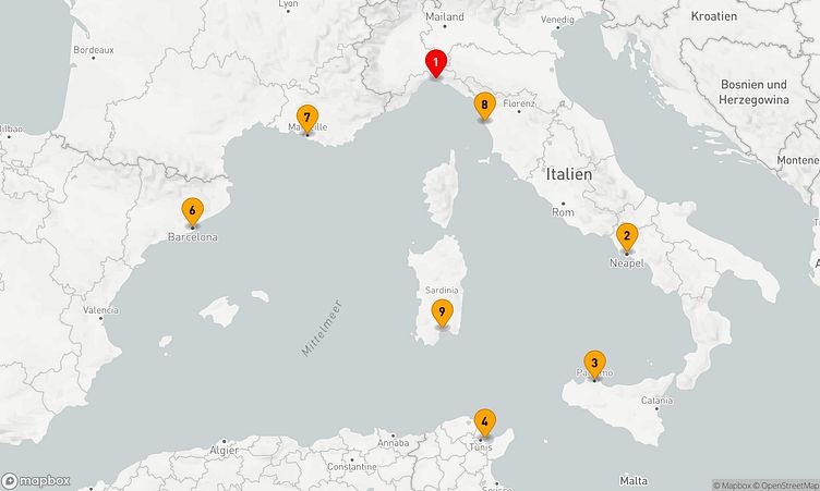 Diese Kreuzfahrt führt Sie zu den beeindruckenden Häfen von Genua, Neapel und La Goulette, die mit ihren Sehenswürdigkeiten und lebendigen Eindrücken auf Sie warten.