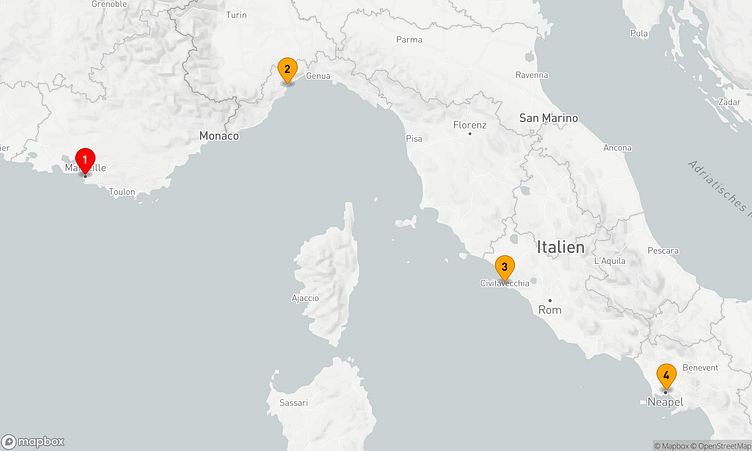 Ihre Kreuzfahrt startet am 30. Mai 2026 in Marseille (Frankreich) und endet nach 3 Tagen am 02. Juni 2026 in Neapel (Italien).