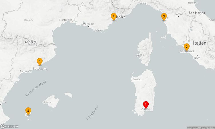 Die Kreuzfahrt „Mittelmeerzauber: Von Sardinien zu den Schätzen des Westens“ bietet eine 7-tägige westliches Mittelmeer-Entdeckungsreise - eindrucksvolle Küstenregionen und lebendige Kulturen.