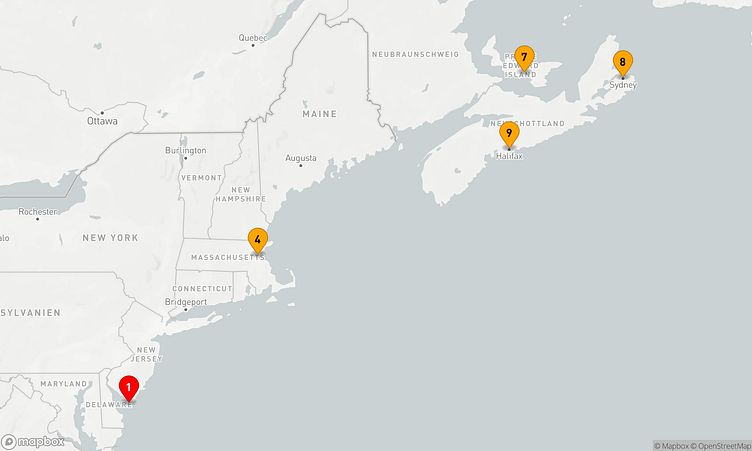 Auf Ihrer Reise besuchen Sie unter anderem die Häfen von Cape Liberty - Bayonne New Jersey, Cape Liberty - Bayonne New Jersey und Charlottetown, wo spannende Eindrücke von Land und Kultur auf Sie warten.