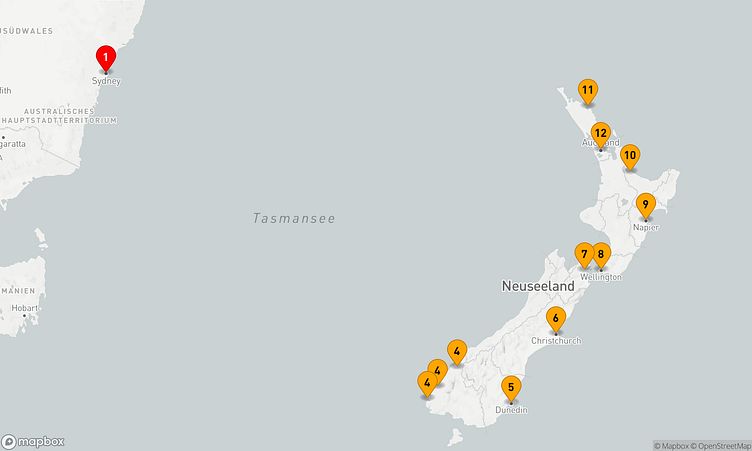 Auf der 11-tägigen Route „NEUSEELÄNDISCHE KREUZFAHRT“ erleben Sie eine unvergessliche Kreuzfahrt durch Australien und Neuseeland mit beeindruckenden Landschaften und faszinierenden Eindrücken.