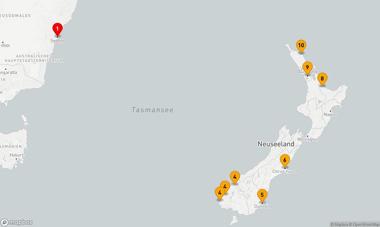 Diese Kreuzfahrt bringt Sie zu den beeindruckenden Häfen von Sydney, Doubtful Sound und Christchurch, die mit einzigartigen Sehenswürdigkeiten und lebendigen Eindrücken auf Sie warten.
