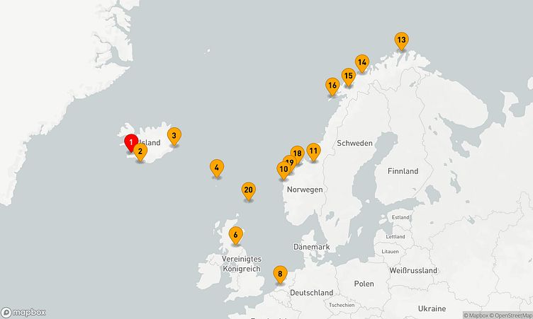 Freuen Sie sich auf Anläufe in Häfen wie Reykjavík, Runavik und Trondheim, die Ihnen authentische Einblicke und besondere Erlebnisse bieten.