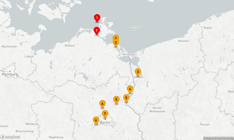 Peenemünde (Deutschland), Wolgast (Deutschland), Stettin (Polen)