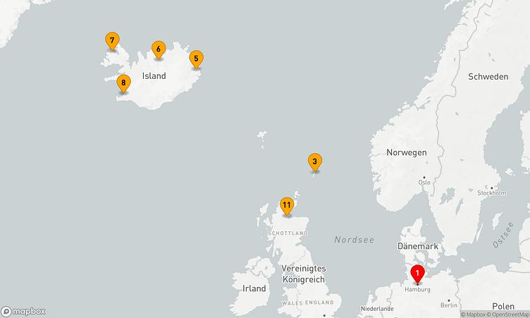 Auf dieser Reise erwarten Sie Stopps in den Häfen von Hamburg, Seyðisfjörður und Reykjavík, wo Sie lokale Highlights und unvergessliche Eindrücke sammeln.