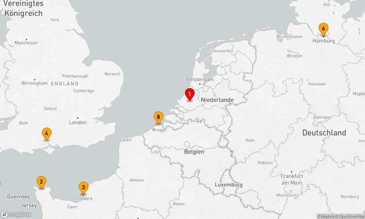 Während der Tour besuchen Sie unter anderem die Häfen von Rotterdam, Cherbourg-Octeville und Southampton, die Ihnen spannende Eindrücke und besondere Entdeckungen ermöglichen.