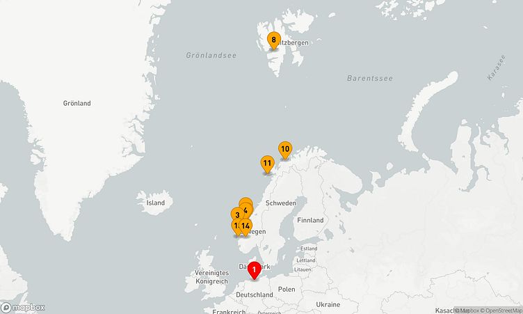 Während der Reise besuchen Sie unter anderem die Häfen von Hamburg, - und Longyearbyen, die Ihnen spannende Eindrücke und einzigartige Entdeckungen bieten.