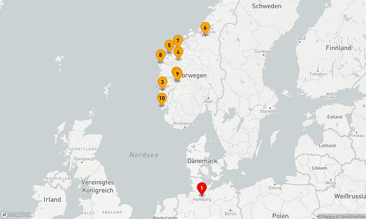 Während der Route legen Sie unter anderem in den Häfen von Hamburg, Geiranger und Molde an, um das einzigartige Flair und die Besonderheiten der Region zu entdecken.