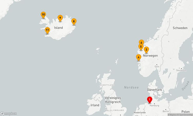 Auf dieser Reise erwarten Sie Stopps in den Häfen von Bremerhaven, Bergen und Seyðisfjörður, wo Sie lokale Highlights und unvergessliche Eindrücke sammeln.