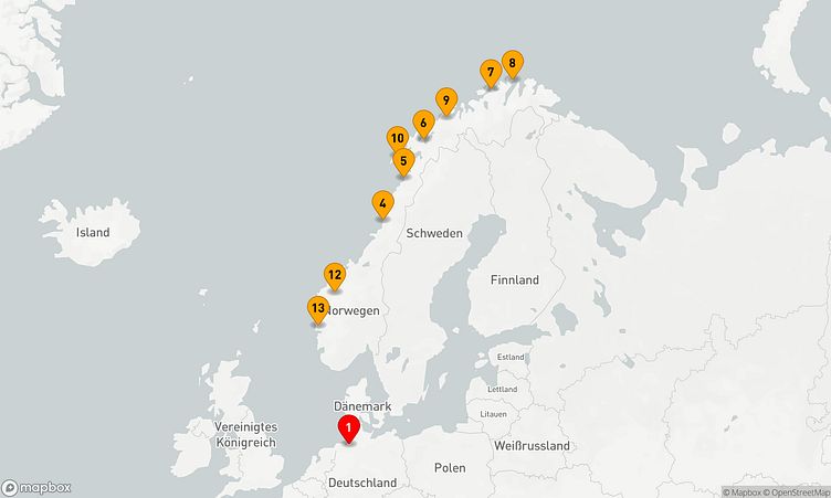 Diese Kreuzfahrt führt Sie zu den faszinierenden Häfen von Bremerhaven, Bodø und Honningsvåg, die mit einzigartigen Attraktionen und lebendigen Eindrücken auf Sie warten.