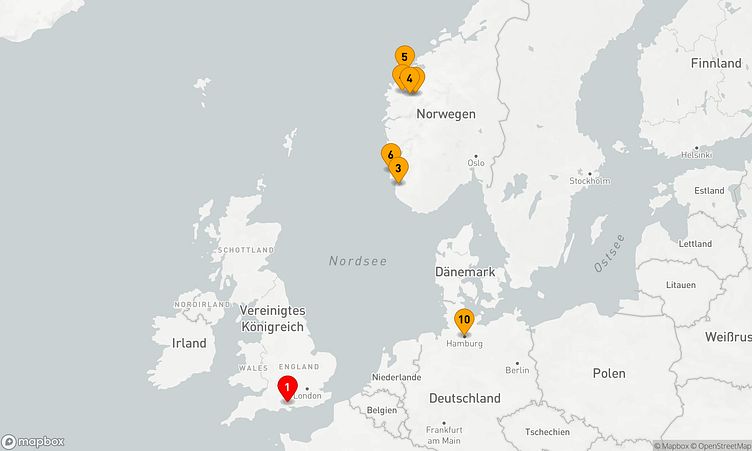 Ihre Route führt Sie unter anderem zu den beeindruckenden Häfen von Southampton, Olden und Ålesund, wo Sie die lokale Atmosphäre und das lebendige Treiben vor Ort hautnah erleben können.