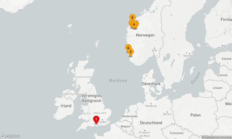Während der Reise besuchen Sie unter anderem die Häfen von Southampton, Stavanger und Innvikfjorden, die Ihnen spannende Eindrücke und einzigartige Entdeckungen bieten.