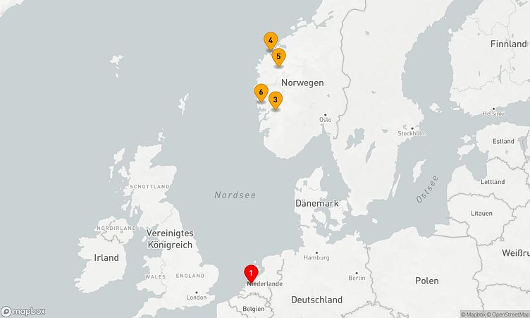Während der Route legen Sie unter anderem in den Häfen von Rotterdam, Odda und Olden an, um die Atmosphäre und die Besonderheiten der jeweiligen Orte zu entdecken.