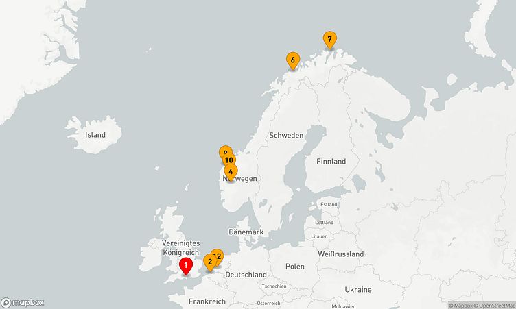 Auf Ihrer Reise besuchen Sie unter anderem die Häfen von Southampton, Flåm und Honningsvåg, wo spannende Eindrücke von Land und Kultur auf Sie warten.