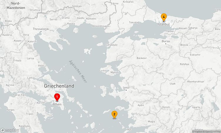 Auf Ihrer Reise erkunden Sie unter anderem die Häfen von Athen (Piräus), Patmos und Istanbul, die mit spannenden Eindrücken und besonderen Entdeckungen auf Sie warten.