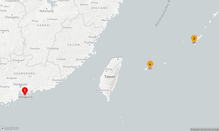 Ihre Route führt Sie unter anderem zu den faszinierenden Häfen von Hongkong, Okinawa und Ishigaki, wo Sie die Atmosphäre und das Leben vor Ort spüren können.