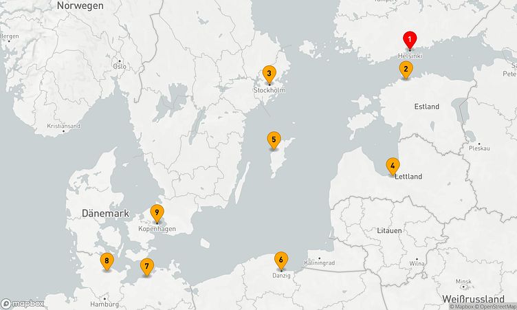 Entdecken Sie beeindruckende Häfen wie Helsinki, Stockholm und Danzig / Gdingen, die mit einzigartigen Sehenswürdigkeiten und lebendigen Eindrücken auf Sie warten.