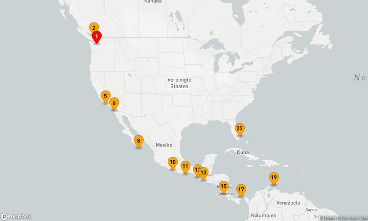 Während dieser Reise erwarten Sie Stops in den Häfen von Seattle, San Diego und Puerto Chiapas, an denen Sie die lokalen Highlights entdecken und unvergessliche Eindrücke sammeln können.