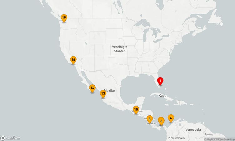 Die Reiseroute beginnt am 25. April 2026 in Miami (Vereinigte Staaten) und führt Sie vom 25. April 2026 bis zum 13. Mai 2026 (18 Tage) nach Seattle (Vereinigte Staaten).
