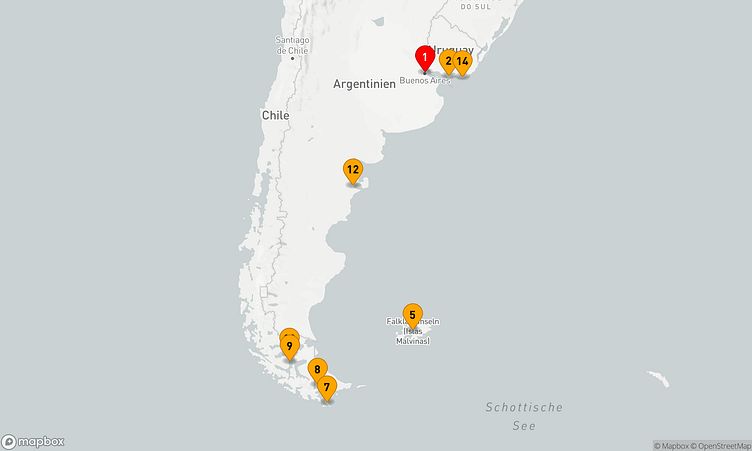 Während der Reise besuchen Sie unter anderem die Häfen von Buenos Aires, Stanley und Magellanstraße, die Ihnen spannende Eindrücke und einzigartige Entdeckungen bieten.