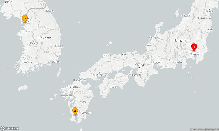 Ihre Route führt Sie unter anderem zu den beeindruckenden Häfen von Tokyo, Kagoshima und weiteren Destinationen, wo Sie die lokale Atmosphäre und das lebendige Treiben vor Ort hautnah erleben können.