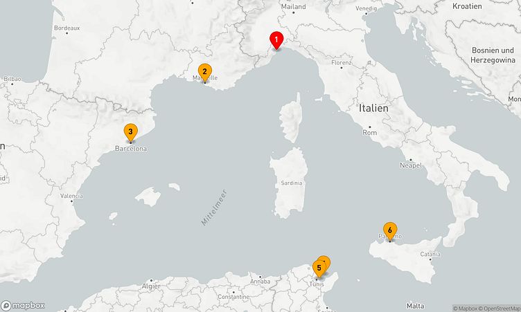 Auf der Reise besuchen Sie unter anderem die Häfen von Savona, Marseille und -, die Ihnen spannende Eindrücke und einzigartige Entdeckungen bieten.