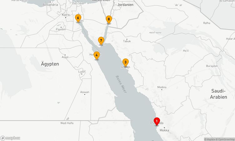 Während Ihrer Reise besuchen Sie unter anderem die Häfen von Dschidda, - und Ain Suchna, wo spannende Einblicke in Land und Kultur auf Sie warten.