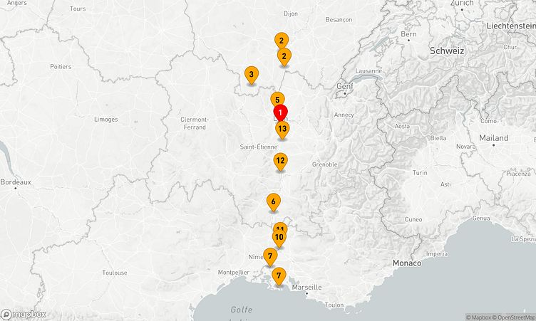 Chalon-sur-Saône (Frankreich), Tournus (Frankreich), Macon (Frankreich)