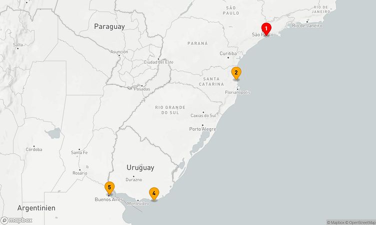 Auf der Route besuchen Sie unter anderem die Häfen von Balneário Camboriú, Punta del Este und Buenos Aires, um das besondere Flair und die Einzigartigkeit der Regionen zu erleben.