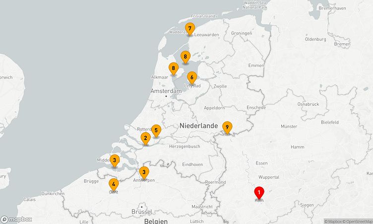 Auf Ihrer Tour besuchen Sie unter anderem die Häfen von Köln, Antwerpen und Dordrecht, wo spannende Einblicke in Land und Kultur auf Sie warten.