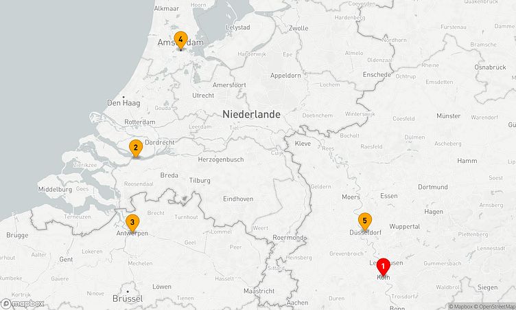 Ihre Route führt Sie unter anderem zu den faszinierenden Häfen von Köln, Willemstad und Amsterdam, wo Sie die Atmosphäre und das Leben vor Ort spüren können.