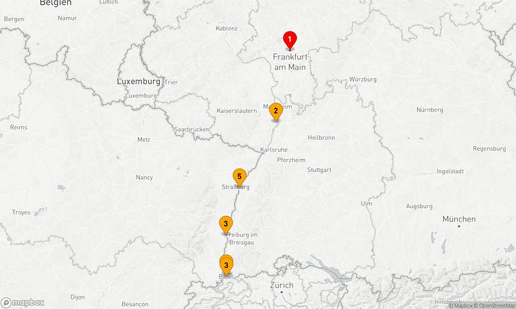 An Häfen wie Frankfurt am Main, Breisach am Rhein und Basel haben Sie die Gelegenheit, die Region auf eine besondere Weise kennenzulernen und Neues zu entdecken.