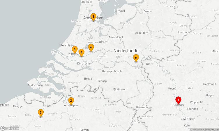 Auf der Route machen Sie Halt unter anderem in den Häfen von Düsseldorf, Antwerpen und Schoonhoven, um das lokale Flair und die Besonderheiten der Umgebung zu entdecken.