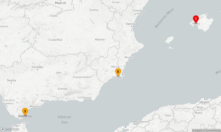 Freuen Sie sich auf Anläufe in Häfen wie Palma de Mallorca, Gibraltar und Cartagena (ES), die Ihnen authentische Einblicke und besondere Highlights bieten.