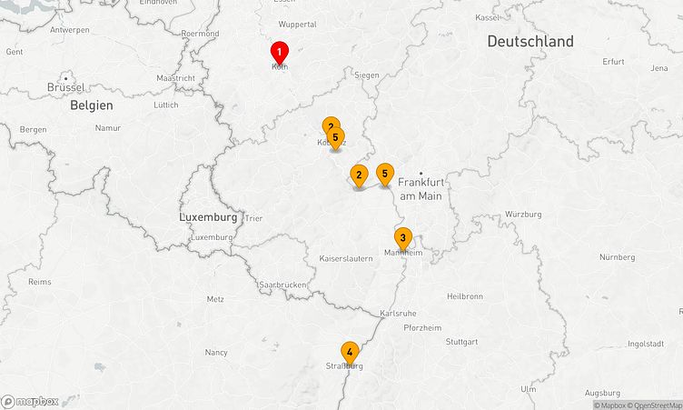 Auf Ihrer Reise besuchen Sie unter anderem die Häfen von Köln, Rüdesheim am Rhein und Straßburg, wo spannende Eindrücke von Land und Kultur auf Sie warten.
