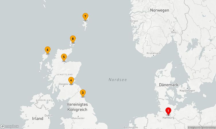 An Häfen wie Hamburg, Newcastle upon Tyne und Shetlandinseln haben Sie die Gelegenheit, die Region auf eine besondere Weise kennenzulernen und Neues zu entdecken.